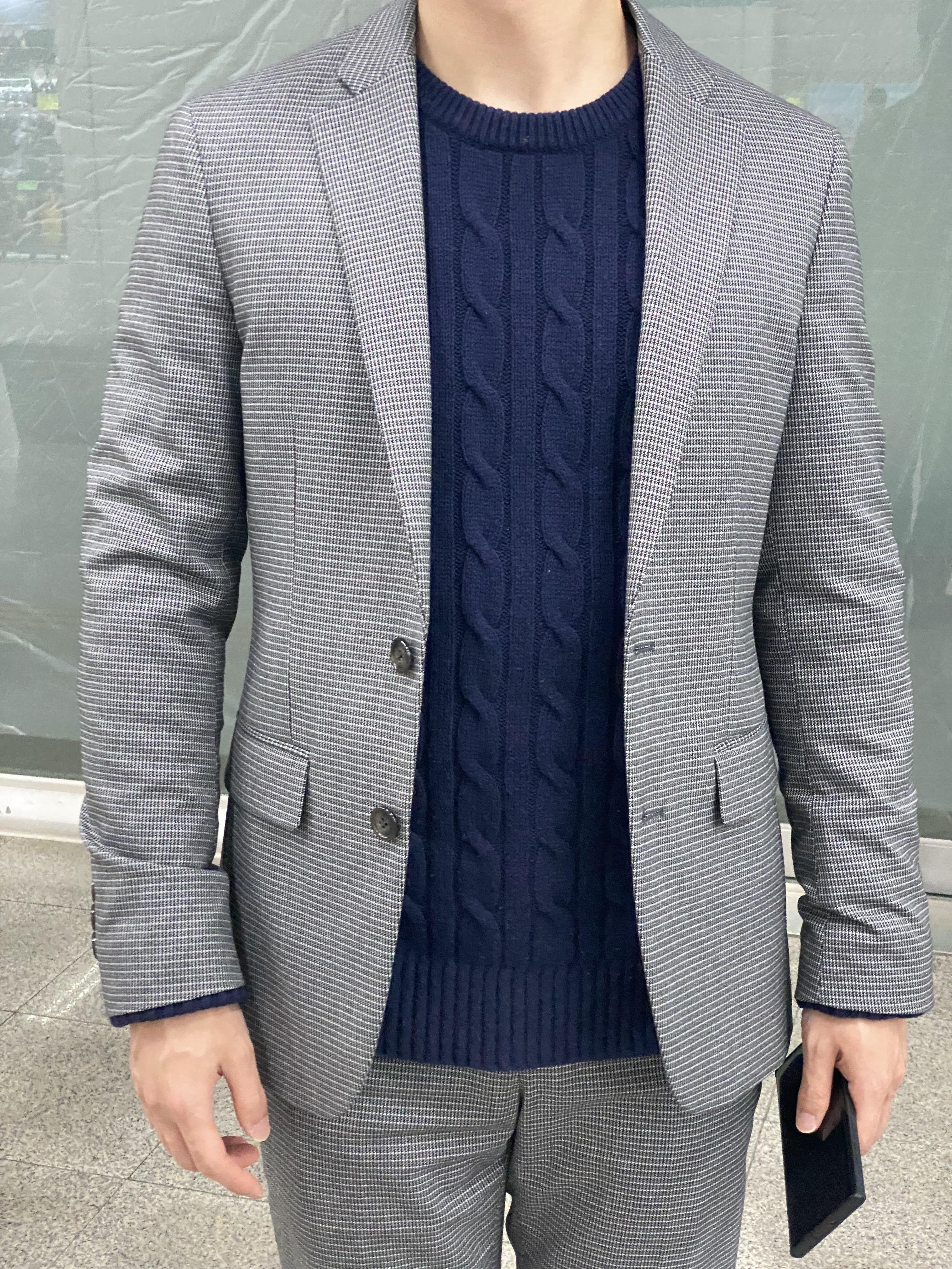 브라운, 네이비 컬러감이 어우러진 체크무늬의 자켓이다. 한참 전 부터 체크무늬 자켓이 유행을 돌았기에 이제는 조금 지루해질 법도 한데, 뭐 내 눈에는 여전히 이뻐 보였다. 무엇보다 이 자켓처럼 회색톤의 체크무늬 자켓을 하나 갖고 싶었는데 마땅한 게 없어서 못 사고 있었다. 자칫하면 아재처럼 보일 것 같다고 생각했으나 나름 괜찮다는 생각이 드는 건, 음.. 걍 이제 리얼 아재 나이가 되서인가..?